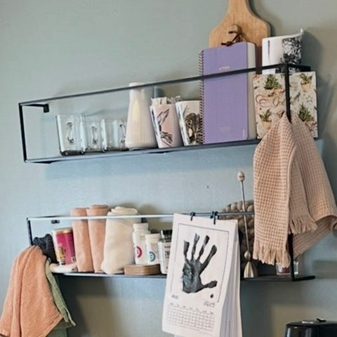 Trådhylle med knagger selges.
