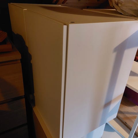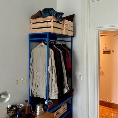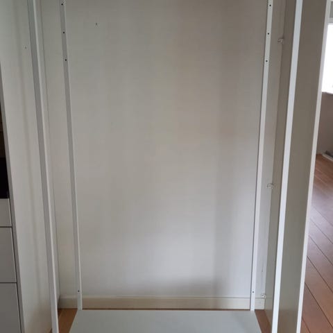 Åpen garderobe med stang til oppheng i Platsa-serien. Noen bruksmerker, men ser helt ok ut.