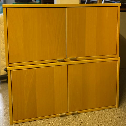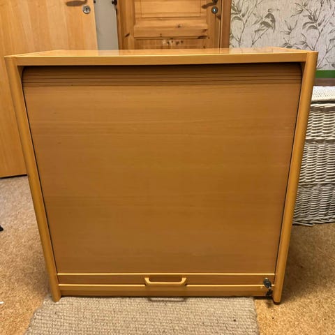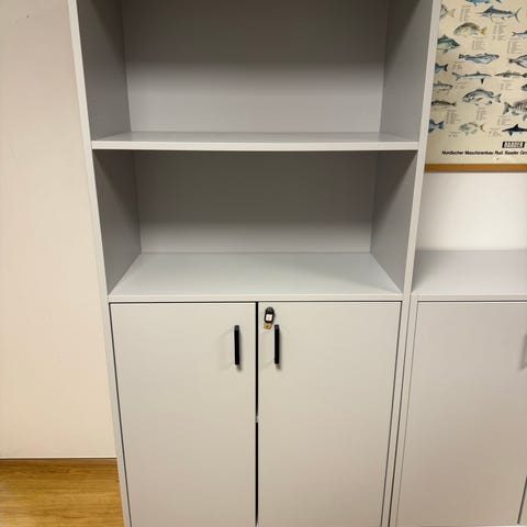 To delt skap,overskap med hyller,80cm høy,79cm bred,31 cm dybde.Underskap 79cm bred,41,5 cm dybde,90cm høyt. Mangler nøkkel.
