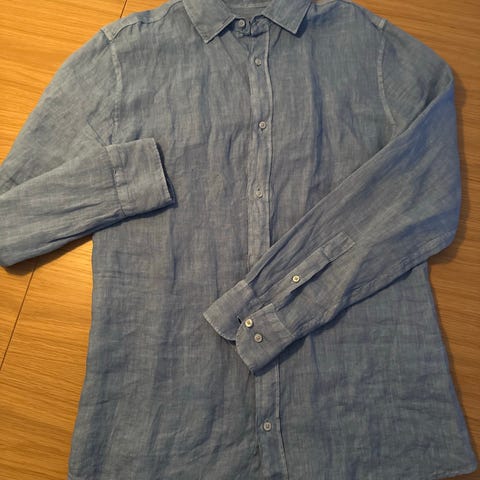 Linskjorte fra Zara i 100% lin. Stoffet fremstår som lett og pustende, egnet til både hverdagsbruk og enklere penere anledninger og er perfekt til sommeren. Har kun brukt den en gang. Selger den da den den dessverre er for liten
