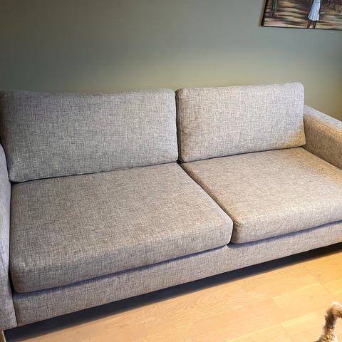 Sofaen er ikke særlig tung, men det er lurt å være to ved henting.
