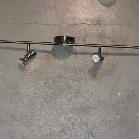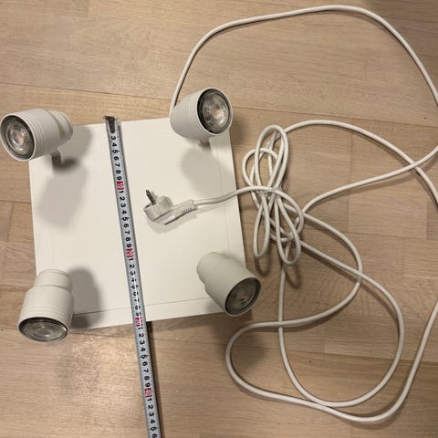 Stilren taklys med 4 justerbare lys i metall med kromfarget overflate. Hvert hode kan vinkles for å rette lyset i ønsket retning. Egner seg til generell belysning i for eksempel gang, kjøkken eller stue. Bruker utskiftbare lyspærer i hver spot (lampen selges uten lyspærer).