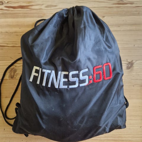 Instruksjonshefte med illustrerte øvelser følger med, som viser hvordan utstyret kan brukes til forskjellige treningsprogrammer. Leveres med oppbevaringspose med SmartGYM-logo.