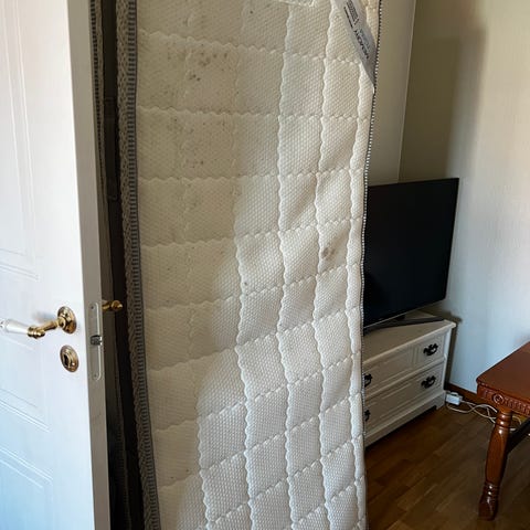 Pent brukt rammemadrass med overmadrass.
