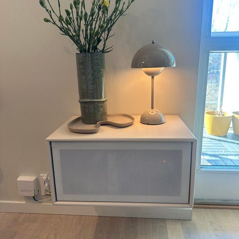 Modifisert Lack hylle fra IKEA. Satt på ben og snudd slik at den kan benyttes som TV benk eller lav hylle/skjenk.