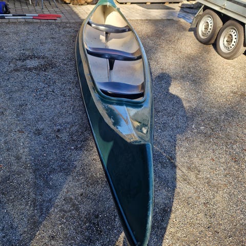 Det er en veldig fin kano som vi desverre ikke har bruk for lenger. Den veier lite og enkel å padle. Det er også helt greit å få den på bil taket.