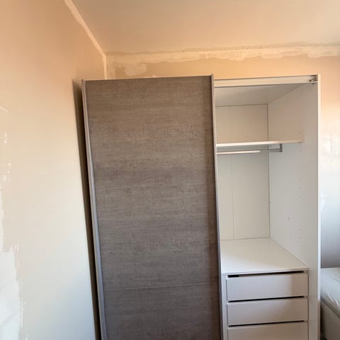 PAX garderobe, meget pent brukt - 2 år gammel. Kjøpt for ca 12000kr på tilbud. Grunnet flytting selges for kun 3000kr - du må demontere den selv.