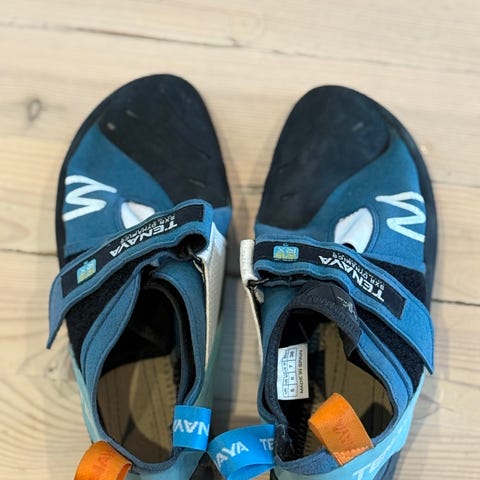 - Tenaya Ra klatresko i størrelse 4 (EU 37). Skoene har borrelåslukking og er i fargene svart og turkis. Modellen er egnet til innendørs og utendørs klatring. Overdelen er utformet for god passform rundt foten,
