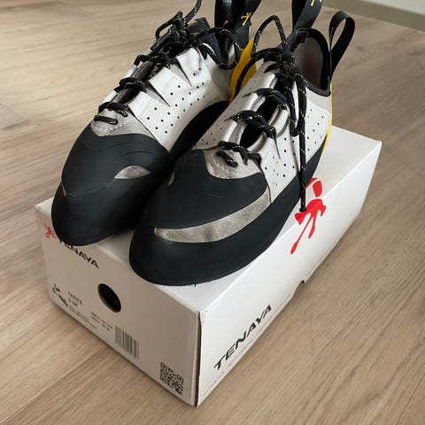 og sålen er laget for godt grep på klatrevegger og stein. Leveres i original eske.