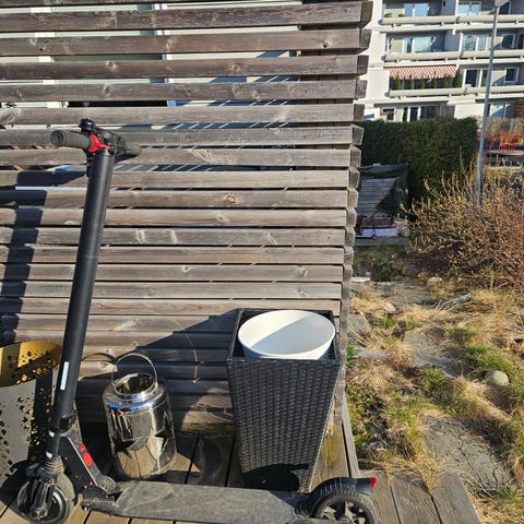 Sparkesykkelen er godt brukt, men fungerer og starter som den skal. Den går fint, men batteriet er dårlig og må byttes. Per nå klarer den maks ca. 1–2 km rekkevidde.