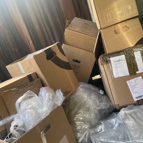 Papp flytteesker egnet til pakking og oppbevaring ved flytting eller lagring. Eskene er sammenleggbare og har bærehåndtak på sidene for enklere håndtering.