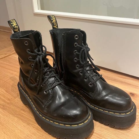 Selger Dr. Martens Jadon Hi-støvler i størrelse 36. De ser enda bedre ut enn på bildene. Brukte dem bare én gang i løpet av sesongen og innså at de er for små. Perfekte for barn eller for alle.