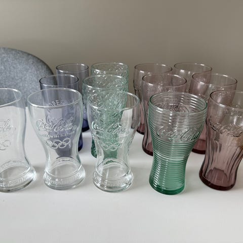 Ulike Coca Cola glass selges for 50,- pr stk.