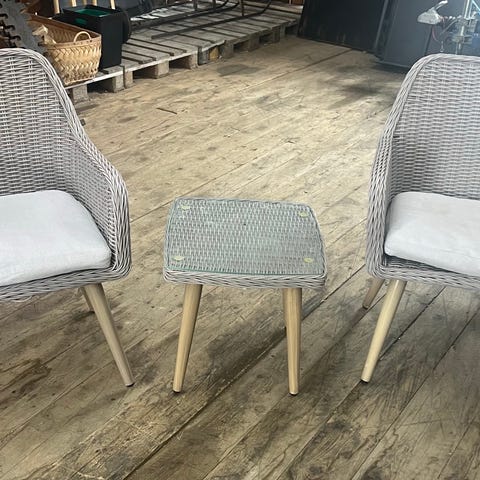 3 stk Jutlandia posisjonsstoler i hardtre og hagebord