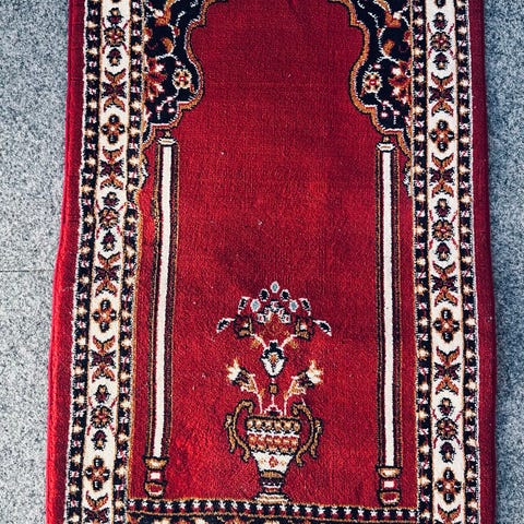 To stk tepper med klassisk orientalsk inspirert mønster. Teppe i hovedsakelig røde og beige toner med dekorativ bord rundt kanten. Størrelse er 200 x 280 cm, egnet som gulvteppe i stue, soverom eller andre oppholdsrom.