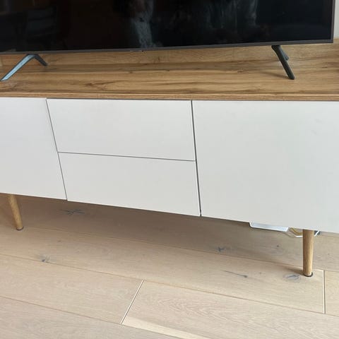 Pent brukt sjenk/tv-benk selges rimelig. Baksiden er litt løs på den ene siden men kan enkelt festes med spikrene på baksiden.
