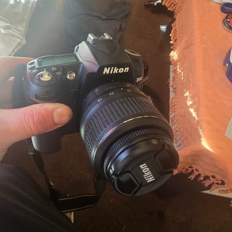 Nikon D70S med et 18-105 objektiv, batteri og 4gb minnekort