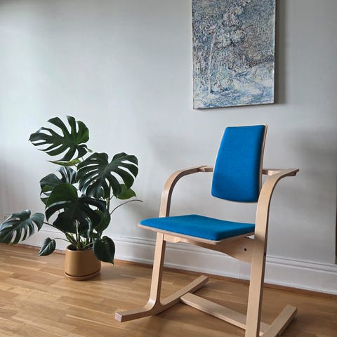 Passer like fint på hytte som i soverom eller entré – typisk stol til å legge fra seg klær.