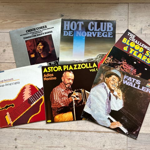 I denne annonser finner du masse bra innen jazz, med artister som Pat Metheny, David Friedman, Hal Galper, Oscar Peterson, Bruford, Keith Jarrett, Al Di Meola, Charlie Parker, Stan Getz, Weather Report, Stanley Clarke, John McLaughlin og masse annet.