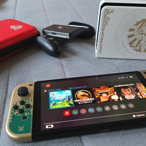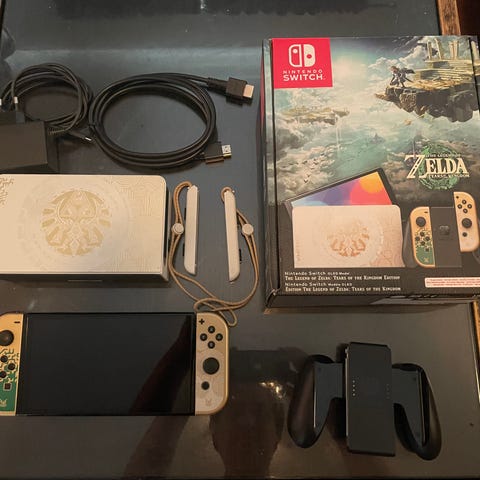 Nintendo Switch OLED Zelda Edition med dock og tilbehør