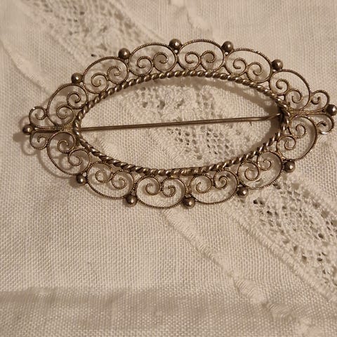 Norsk filigran sølvbrosje stemplet 925s Norway