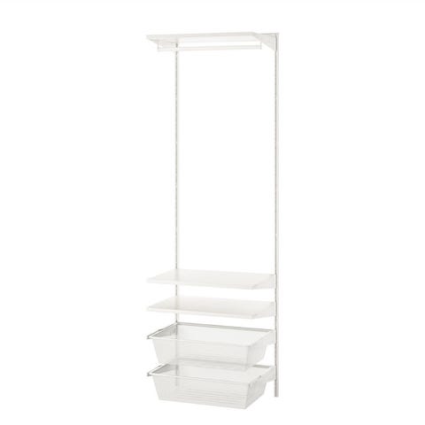 Ikea’s Boaxel hyllesystem, total systembredde 3,20m. Innkjöpt i februar og kun benyttet i ca. 1 måned. 9stk av platene er kompositt, resten av hyllplan og skohyller er aluminium.