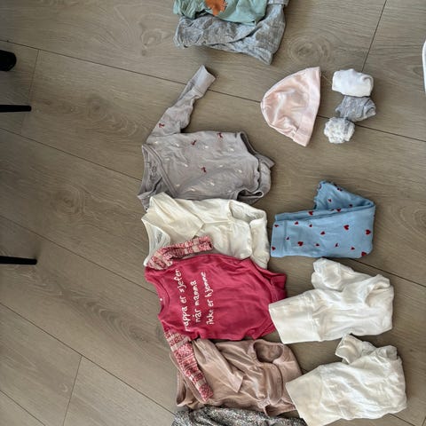 Bukser 4 stk, body 3 stk og 1 jakke. Røyk og dyrefritt hjem.