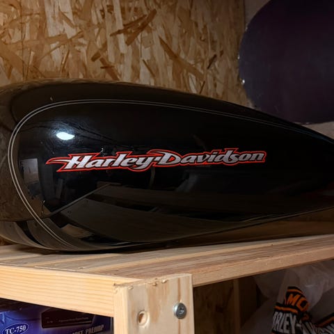 Selger en Harley Davidson bensintank som jeg har brukt som dekorasjon på en hylle eller på veggen. Hvis du ønsker et annet design eller en annen farge, kan jeg også lage det.