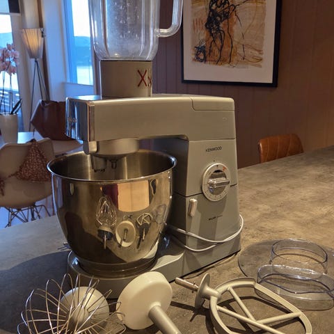 Kenwood major kjøkkenmaskin. Medfølgende utstyr på bildene.