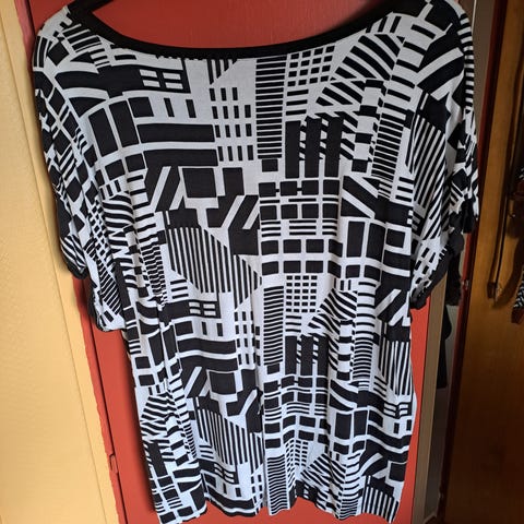Selger unna litt klær i store størrelser. Noe kan være L å noe er XXL. Pent brukte klær. Info og pris på bildene. Kjoler, bukser, gensere og topper. Kan også sende via postnord utenom finn for 69,-.