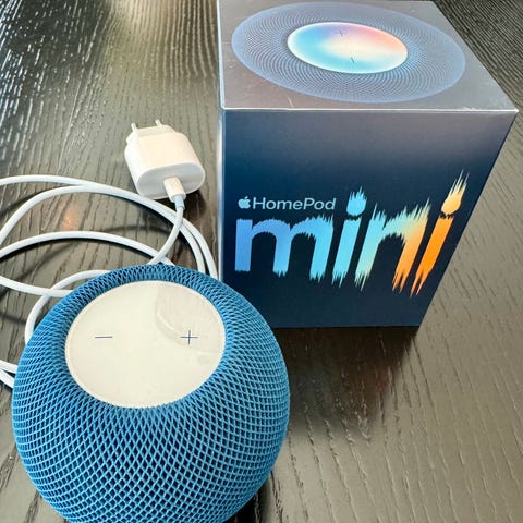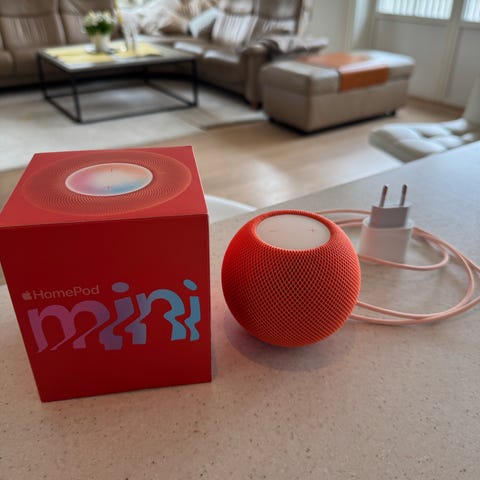Enheten drives via strømtilkobling og styres via berøringsfeltet på toppen eller tilkoblede Apple-enheter.