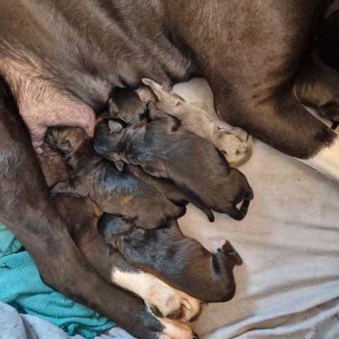 Mor er veldi flink med valpene sine.