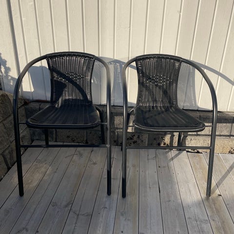 På en av stolene er plasten forskjøvet noe ned i ryggen, men dette kan sikkert justeres med litt innsats (se bildet) - uansett kun kosmetisk.