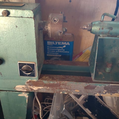 Solid Dreiebenk av eldre årgang. Ikke vært i bruk de siste 20år, men alltid vært lagret innendørs.