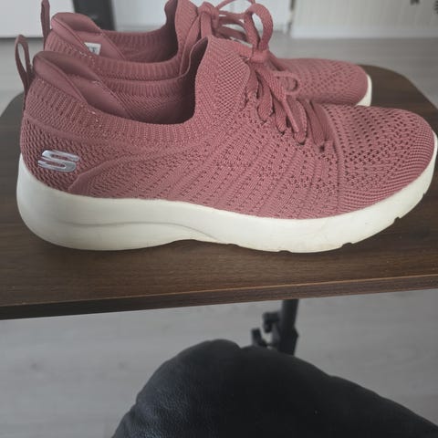 Flotte og nesten ubrukte sko str 37 tilsvarer 38 da skeschers er stor i str. Kun brukt en gang da de er litt for små, skulle hatt en str større da jeg bruker 39.
