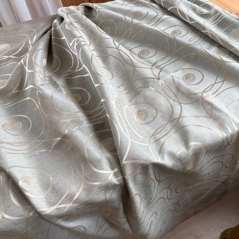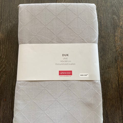 Jeg selger en pen duk i sølvgrå nervøs fløyel fra Kid. Passer til spisestuebord. 1,4 meter bred og 2,5 meter lang.