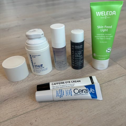Blandet parti hudpleieprodukter for ansikt og kropp. På bildet vises ulike kremer, rens og behandlinger fra flere merker, blant annet fuktighetskrem, ansiktsrens, solbeskyttelse og spesialprodukter for hudpleie. Produktene kan omfatte både ansiktskrem, kroppskrem, serum, renseprodukter og andre hudpleieartikler. Egnet for generell hudpleie av ansikt og kropp. Merker, nøyaktige typer og størrelser varierer mellom produktene i partiet.