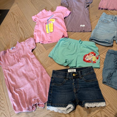 11 shorts og 12 T-skjorter for jente i str. 98 selges.