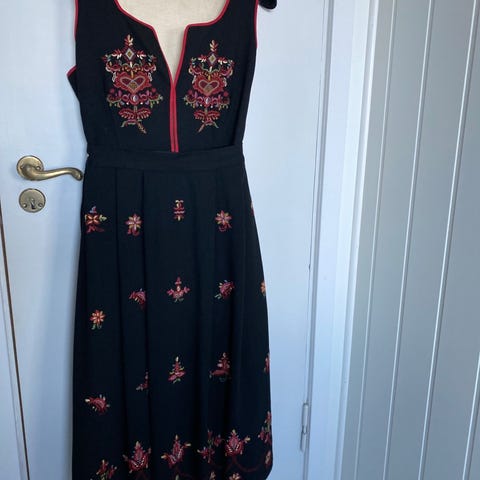 Bunaden er sydd i tynt ullstoff å faller veldig fint. Skjørt og forklesett er helt nytt…. Vesten er veldig fint brukt. Jeg tilpasser gratis.