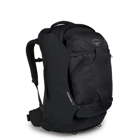 Osprey farpoint 70 . To sekker, en dagstursekk på 15L og en større på 55L. Dagstursekken kan festes på den større når man skal frakte begge.