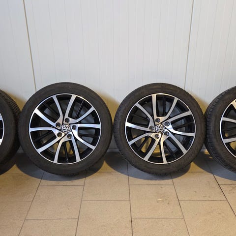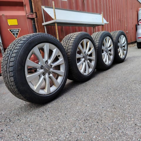 Komplett hjulsett med veldig fine grå felger og gode Goodyear Helårsdekk 215/50/17 til salgs.