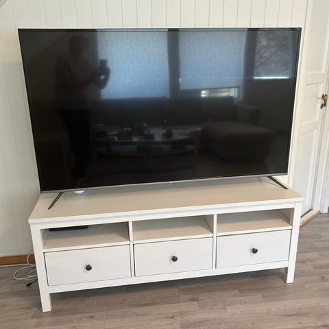 Samsung TV med flat skjerm, 59-tommers og svart farge. Inkluderer tilkoblingsporter på baksiden for eksterne enheter, f.eks hdmi kabel til pc eller chrome cast. Passer til bruk i stue eller andre rom. Det er en gammel modell; Samsung 59» Plasma TV PS59D535, men fungerer likevel bra. Fjernkontroll følger med. Må hentes, pris kan diskuteres.