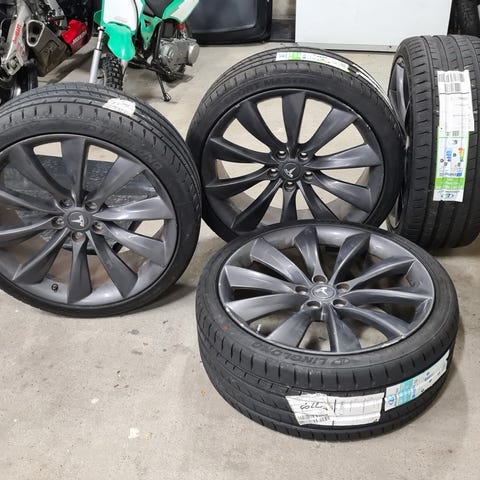 Originale Tesla Model S 21" Turbine-felger m/ nesten nye sommerdekk