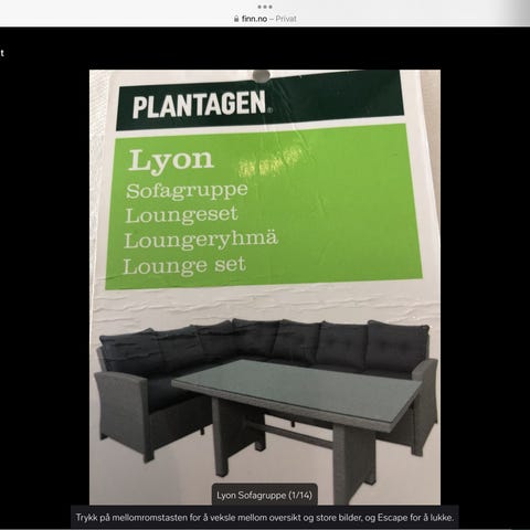 Sofagruppe kjøpt ny sommeren 2023 selges da det ikke passet på terrasse etter flytting