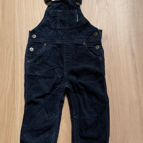 Polarn O. Pyret selebukse for barn i størrelse 104. Buksen er i blå bomull og har klassisk selefasong med justerbare seler. Den er laget i mykt kordfløyelsstoff, med lomme på brystet og lommer i sidene. Unisex-modell som passer både gutter og jenter.