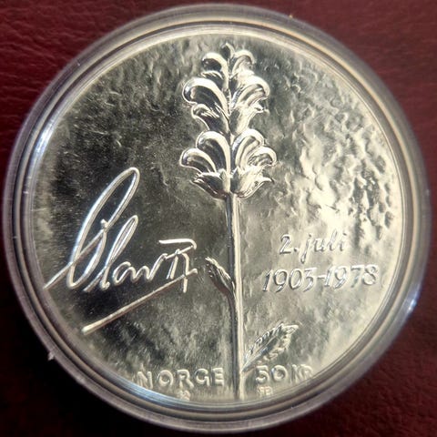 Norges Bank 25 Kroner Minnemynt Frigjøringen 1970 Sølv