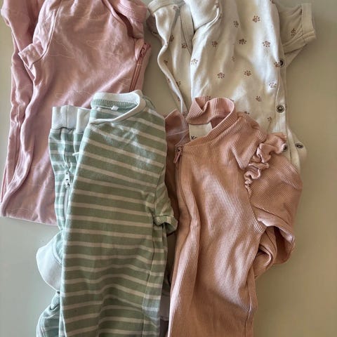 Pakken inneholder flere langermede bodyer i myk bomull.