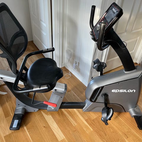 Sykkelen har lav innstigning og et bredt sete med ryggstøtte for mer oppreist og støttet sittestilling. Pedalene har stropper for å holde føttene på plass under bruk. Foran sitter et display som viser treningsdata som tid, hastighet, distanse og antatt kaloriforbruk (funksjoner kan variere etter modell).
