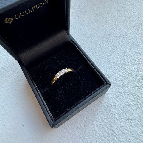 Selger denne fine gullringen i 585 gull (14 karat). Ringen følger med ekse og eksthetssertifikat. Ny pris på denne ringen er 6,433. Innvendig omkrets på ca. 48 mm, eller US størrelse 4,5.