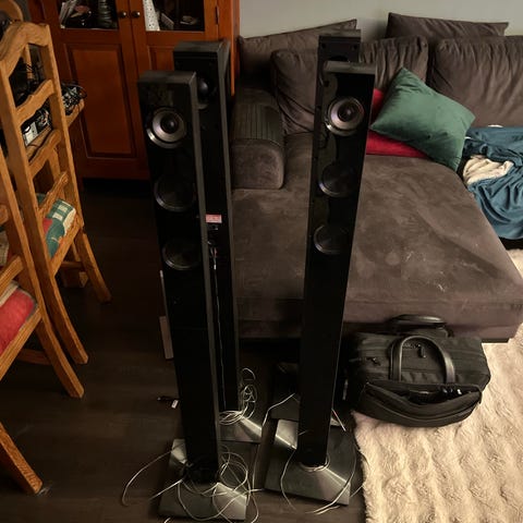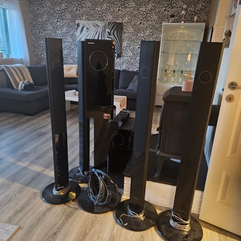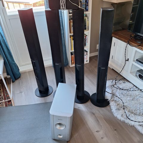 Enkle surround høytalere tilhørende ett hjemmekino anlegg som ikke lenger brukes